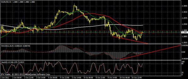 Ну вот на часовом графике видно что пара образовала дивергенцию,но считаю что пока нет закрепления выше уровня 1.2900 покупать не стоит,тем более сейчас рынок боковой и сильных движений ожидать не приходиться,так что скорее всего пара будет болтаться между уровнями 1.2900 -1 2840...