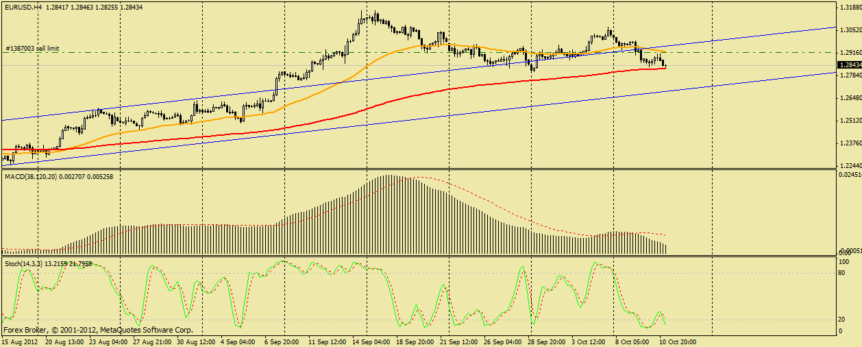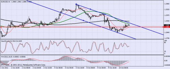 Пара EUR/USD сейчас торгуется в нисходящем канале с уровнем сопротивления 1.2900,так что для меня картинка достаточно проста...нужно продавать от верхней границе канала,теи более есть остановка и есть где поставить стоп...так что цель 1.2840