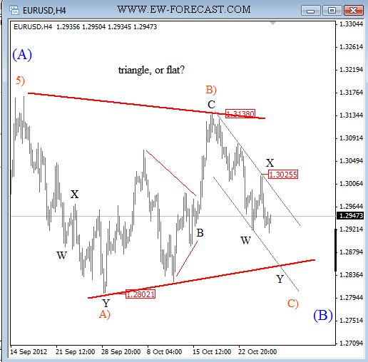 Одно из видений дальнейшего развития ситуации Таково , что до конца года пара евродоллар будет находится во флете либо будет формироватся треугольник.с последующим снижением обновлением минимумов.Краткосрочно настроение бычие. Прикрепленные файлы: