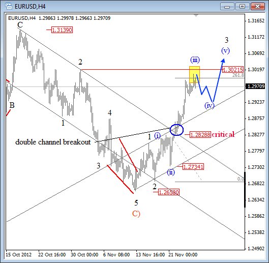 Целевые уровни формирования третьей волны вниз:1.2910 и 1.2880.