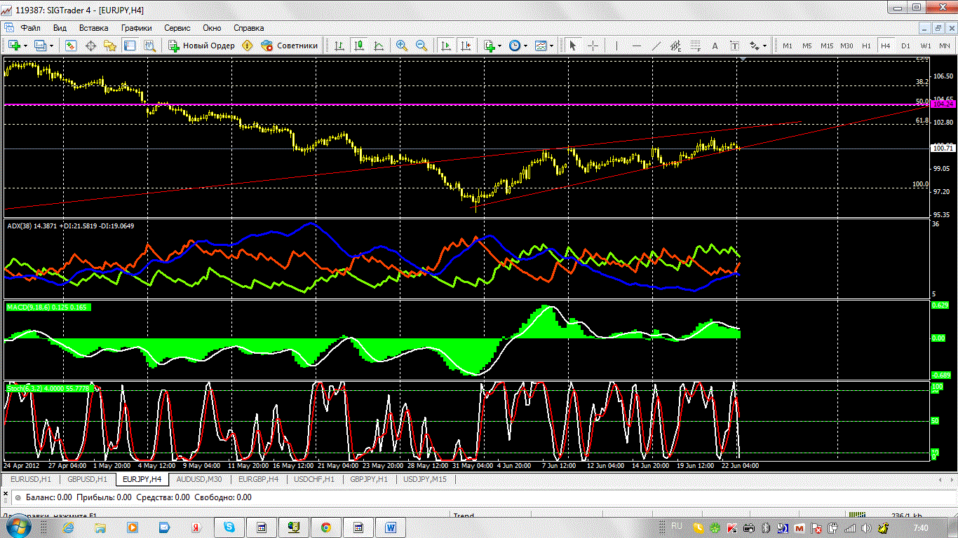 Евро/доллар Пошли на закономерную, справедливую коррекцию первой волны вверх. Предлагаю не продавать. Предлагаю выставить звонки и ждать. Справедливой и закономерной покупки ))) Звонок на 1.2595 (зона до 1.2560 - 1.2480). Смотрим вход на покупку. Цель - 1.2740. Возможно, валюта пойдет и выше, но по моему ТА в этой точке пока все прогнозы обрываются... Редактировалось: 1 раз (Последний: 2 июля 2012 в 10:08) Весна - неизбежна! | ||||