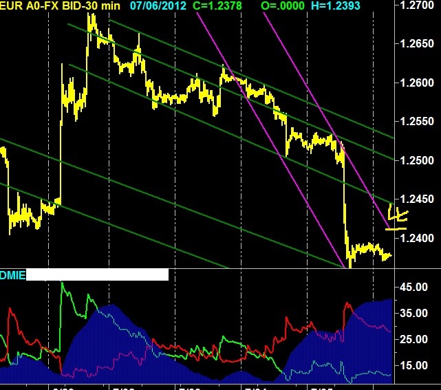 В принципе - уж коли я собиралась продавать, то вход в продажу был от 1.2396, результативность сделки бы составила пипсов 25, ну 30... И рынок встал.