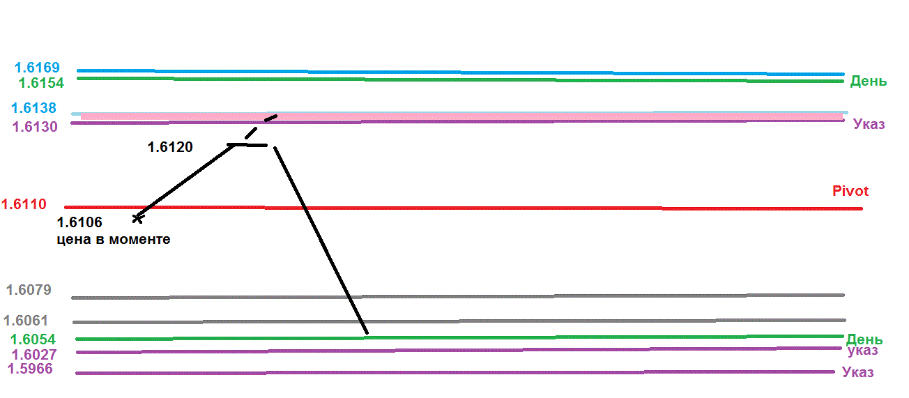 Фунт, итоги за вчера. Цена стремительно взлетала к вершине канала на Н4, проведенного по 1.6216 и 1.6177. Поэтому и продал вчера от 1.6130, практически без боязно. Но фунт продолжает кочевряжиться. Но это не серьезно, продажи не закрываю и даже если пойдет выше, буду добавлять еще продажу. Никуда, этот милок от нас не денется. | ||||||