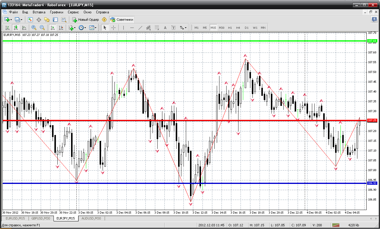 И последняя пара из ветки: евройена. Уже нет того оголделого тренда, даже вчера потихоньку от 107.45 дала себя продать. На сегодня: 107.25 (пивот)...цена его уже несколько раз туда-сюда прошила. Ждем более значимых уровней для входа в рынок. Сопротивления 107.66 - 107.98 -108.39. На этой летучей паре я бы раньше уровня 107.98-108 не лез в продажи. Покупки: 106.93 - 106.52 - 106.20... Это все поддержки. Прикрепленные файлы: