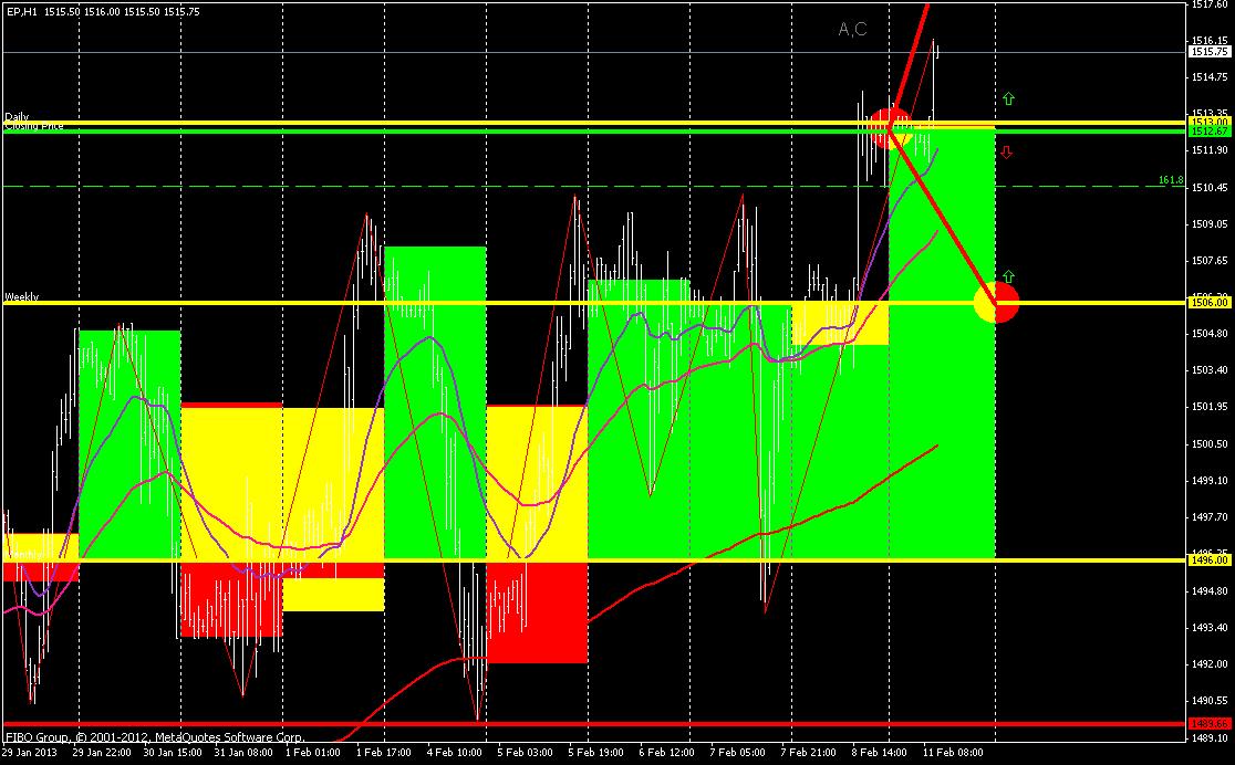 Фьючерс на индекс S&P 500 вчера встретился с сопротивлениям (и текущим локальным максимумом года) 1514 полностью остановился и в конце торговой сессии загнулся на юг, RSI образовал дивергенцию и сигнал на продажу, заметен выход обьема, думаю от рынка сегодня все таки стоить ожидать развития южного сценария, целевыми отметками думаю станут уровни 1500- 1496. ![]() | ||||