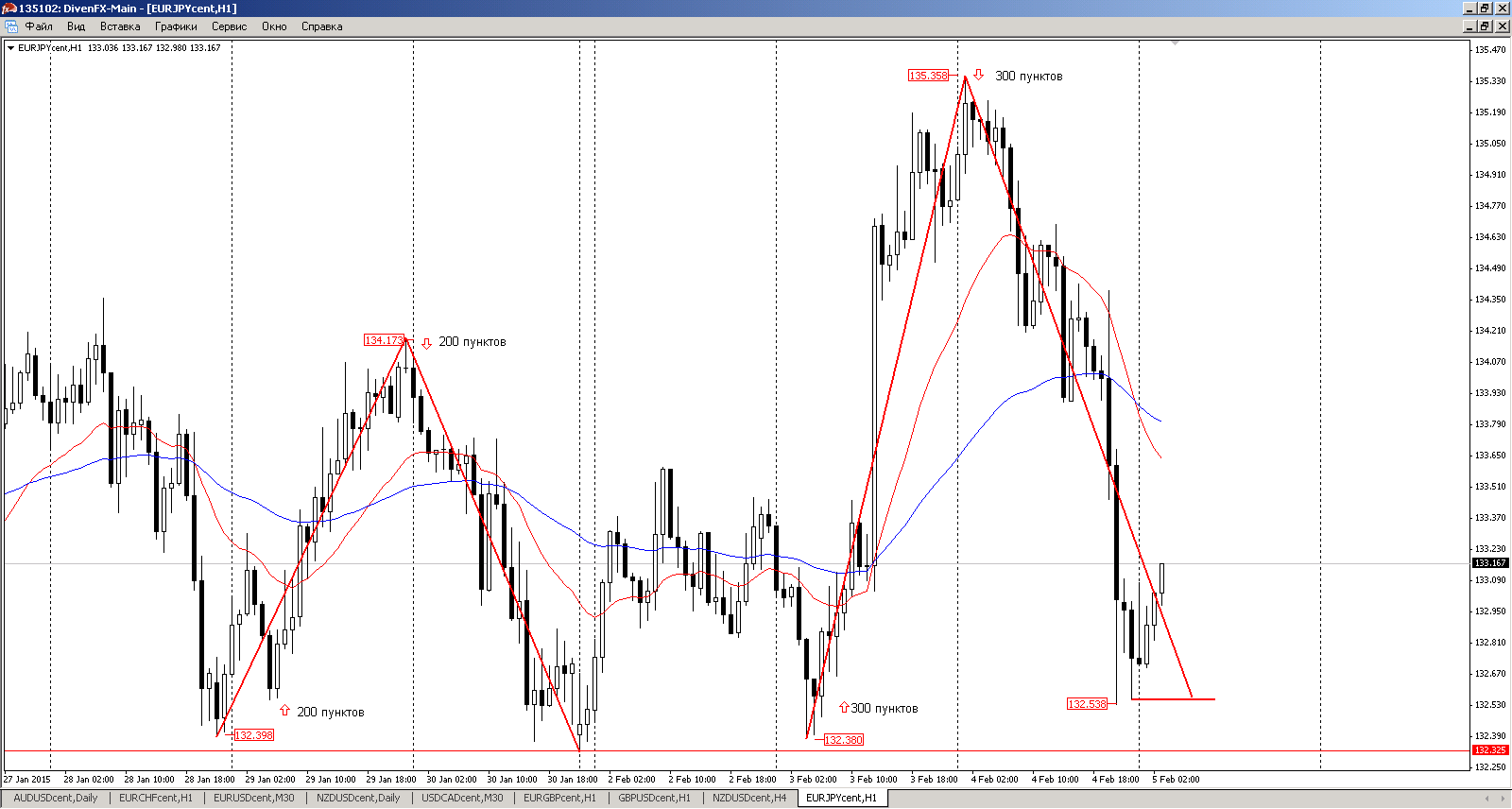 Одна из самых лучших валютных пар для того, чтобы заработать много и сразу. Это ЕвроЙена. Не редкость по паре и 200-300 пунктов за день. обычно Японцы задают динамику по валютной паре. И можно просто использую текущий тренд поддерживая направление получить большой профит. Прикрепленные файлы:
