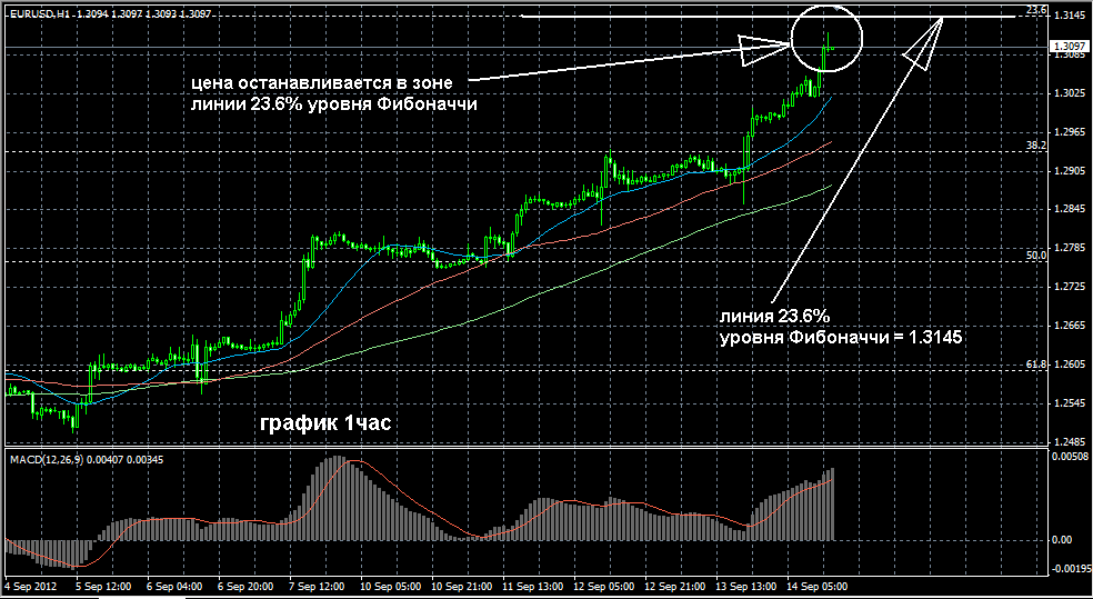 Открьіл позицию на продажу. Цена вьішла вьіше абсолютного максимума 1.3120 и индикаторьі MACD-Histogram графика 5минут и 15минут начали указьівать на поворот ценьі вниз. Если даже поспешил, то вверху имеем вьішеупомянутое сопротивление. Вряд ли пойдёт вьіше. Цельій день сегодня вьісматриваю поворот ценьі вниз. Надеюсь, что если даже ошибся, то ошибка будет незначительной. Редактировалось: 1 раз (Последний: 14 сентября 2012 в 17:41) |