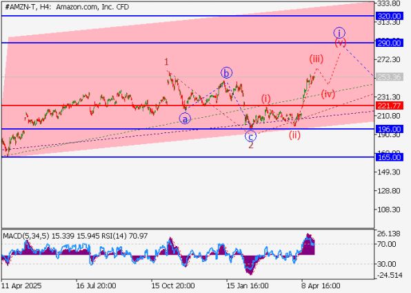 Акции Amazon торгуются у $255,39. Волновой анализ Эллиотта указывает на развитие восходящей третьей волны. Технические уровни и торговые стратегии.