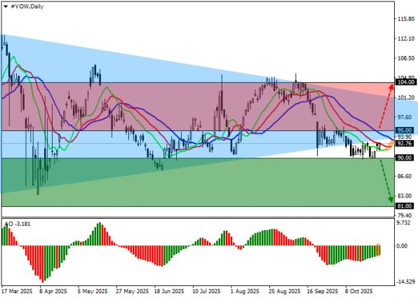 На 29 октября 2025 года акции Volkswagen AG (VOW3.DE) торгуются в районе 92.00, демонстрируя признаки нестабильности на фоне сохраняющегося медвежьего давления. Для инвесторов, рассматривающих возможность входа в позицию или корректировки существующего портфеля, особенно важно понимать текущую техническую картину и потенциальные сценарии развития событий.
