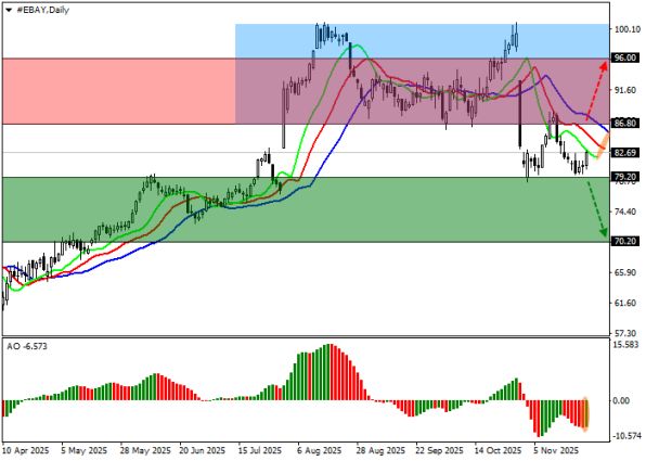 Этот вариант актуален в случае возврата к бычьей динамике, например, на фоне позитивной фундаментальной отчётности eBay или общего роста рынка e-commerce. Преодоление уровня 87.00 может стать катализатором для нового восходящего движения.