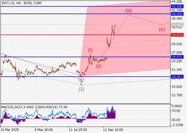 Если данная интерпретация верна, цена акций Intel может вырасти до диапазона 40.00–42.50 долларов. Ключевой уровень для подтверждения сценария — 32.97: его пробой вниз отменит бычий прогноз.