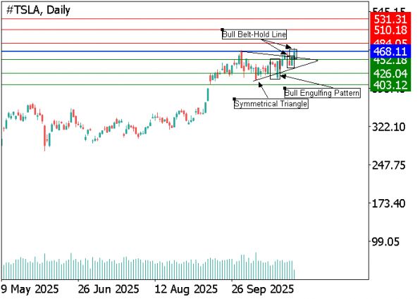 На фоне устойчивого роста технологического сектора и повышенного интереса инвесторов к акциям инновационных компаний, акции Tesla Inc. остаются в центре внимания. По состоянию на 4 ноября 2025 года, цена актива зафиксирована на отметке 468.91 USD, демонстрируя признаки восходящего импульса. В этой статье мы разберём текущую рыночную ситуацию, ключевые уровни поддержки и сопротивления, а также предложим проверенные торговые сценарии, основанные на свечном анализе и классических моделях технического анализа.