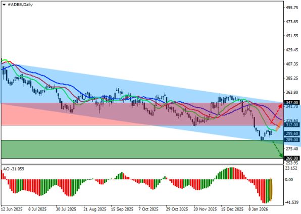 Этот сценарий ориентирован на инвесторов и трейдеров, ожидающих разворота по акциям Adobe и готовых заходить в рынок только после подтверждённого выхода цены из зоны давления продавцов. BUY STOP выше 312.00 снижает риск ложных входов, но при этом требует терпения и дисциплины в ожидании сигнала.