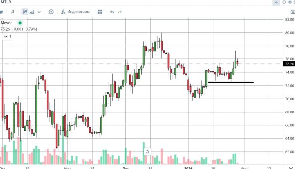 Текущая консолидация у 75 рублей выглядит как подготовка к следующему импульсу. Решающим фактором станет реакция цены на уровень 72,50 рублей — именно здесь формируется краткосрочная карта движения для акций МЕЧЕЛ в феврале 2026 года.