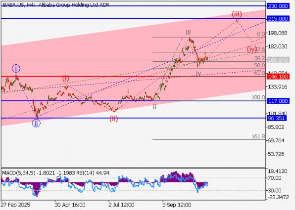 С точки зрения технического анализа, на графике BABA формируется сложная волновая структура. В настоящий момент наблюдается развитие восходящей импульсной фазы. Это указывает на доминирование покупателей и высокую вероятность продолжения роста.