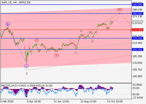 Анализ графиков позволяет выявить сложившуюся восходящую тенденцию. В рамках текущего ценового движения завершилась фаза коррекции (отката), что создает почву для потенциального продолжения роста. Формируется волновая структура, указывающая на целевые уровни в зоне $280.00 – $300.00 за акцию.