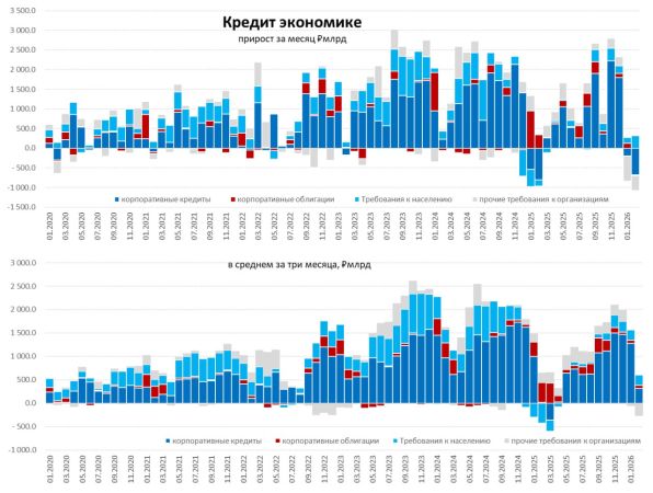 Ипотечное кредитование, напротив, показало краткосрочный всплеск. Однако эксперты сходятся во мнении, что это разовый эффект, связанный с закрытием старых одобренных заявок по старым условиям. Уже в марте статистика отразит спад и в этом сегменте. С февраля уходит фактор поддержки со стороны ипотеки, а корпоративный сегмент остается под давлением нормативов достаточности капитала банков, которые становятся жестким ограничителем.