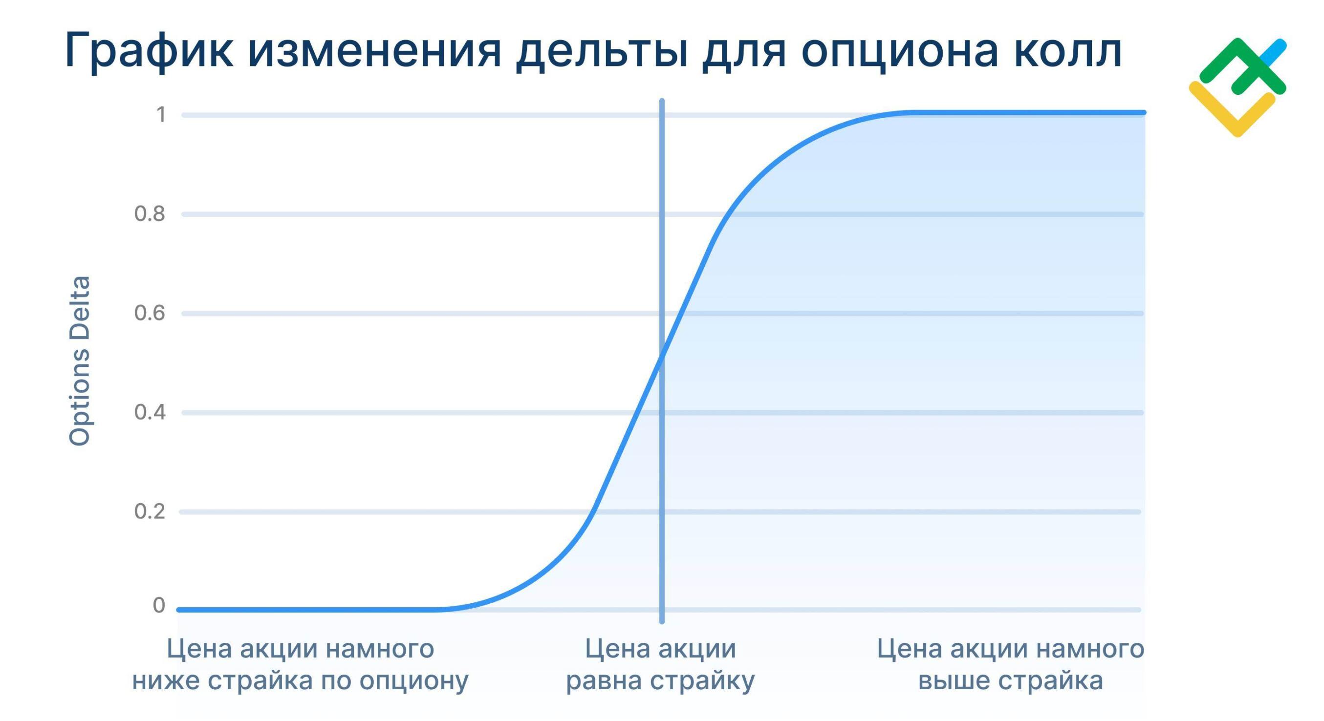 4. Дельта – коэффициент, который отображает зависимость изменения стоимости опциона от изменения стоимости акции. Например, если акция подорожала на 1 USD, колл-опцион подорожал на 10 центов, то коэффициент Дельта = 0,1 или 10%. Для колл-опциона дельта положительная, для пут-опциона – отрицательная.