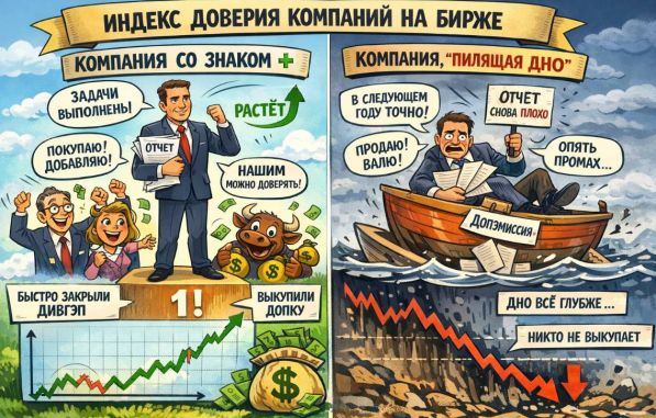Ключевой вопрос, который рынок задаёт снова и снова: «Ты сделал то, что обещал?» Если ответ положительный — и это повторяется квартал за кварталом — складывается так называемый индекс доверия компании. Это не рейтинг аналитиков и не внутренний KPI, а объективный сигнал, выраженный в виде устойчивого притока капитала и предсказуемого поведения котировок.
