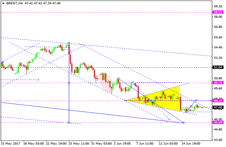 Нефть продолжает торговаться в диапазоне консолидации на минимумах. На сегодня рассмотрим возможность роста к уровню 48.15. Далее - снижение к 45.60. Затем - рост к уровню 52.00.