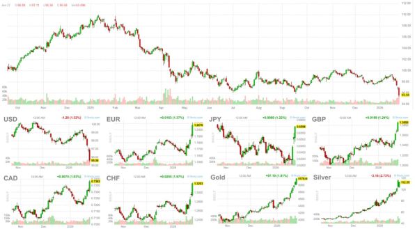 Ослабление доллара частично спровоцировано действиями Банка Японии по стабилизации иены перед досрочными выборами 8 февраля. Это дало импульс рынку драгоценных металлов — золото и серебро растут на фоне дешевого доллара. Крупные хедж-фонды, включая Citadel, активно играют на повышение металлов.
